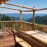 The house has a social and living room with a fireplace, a modern bathroom, a well-equipped kitchen, two separate bedrooms and a large outdoor terrace with unique views.